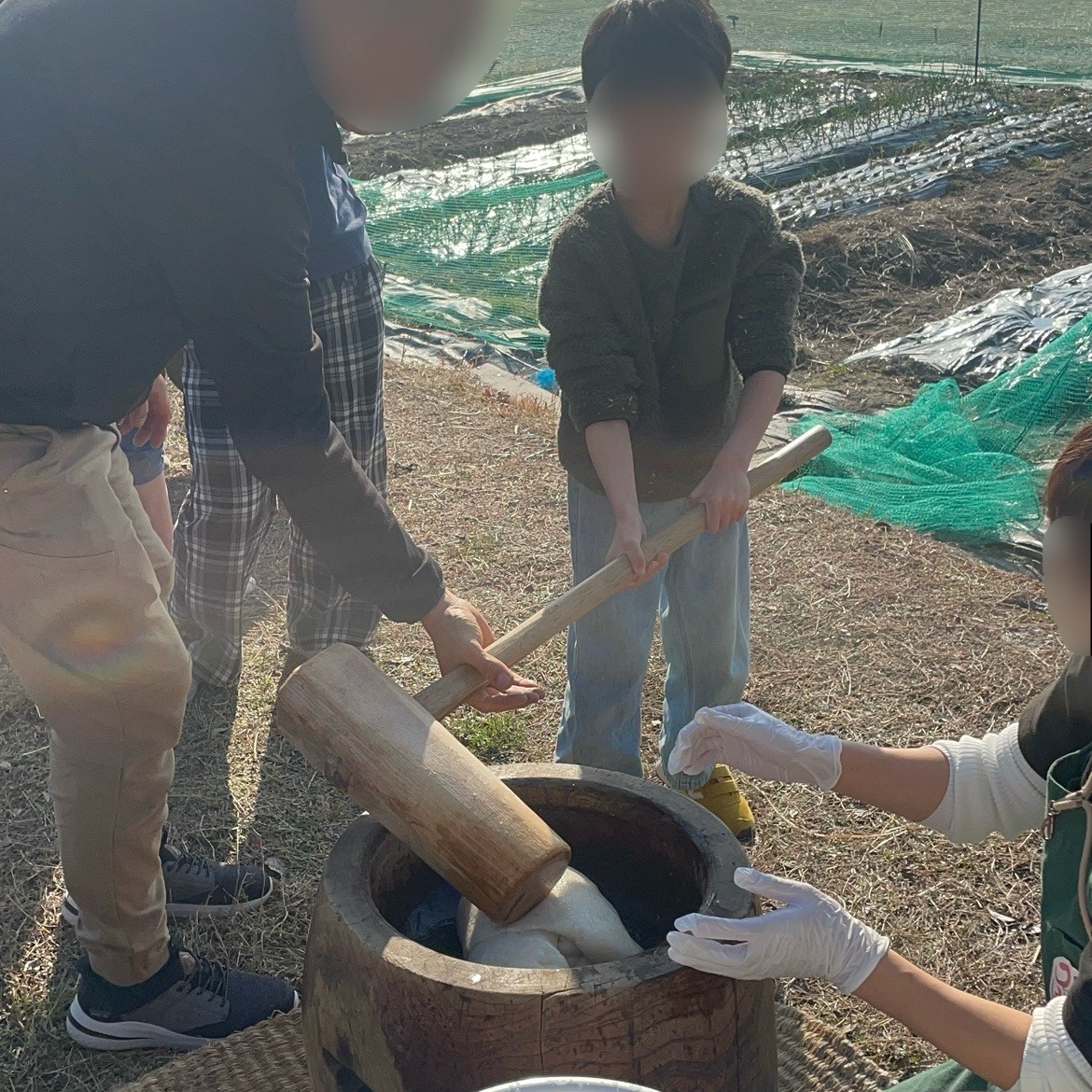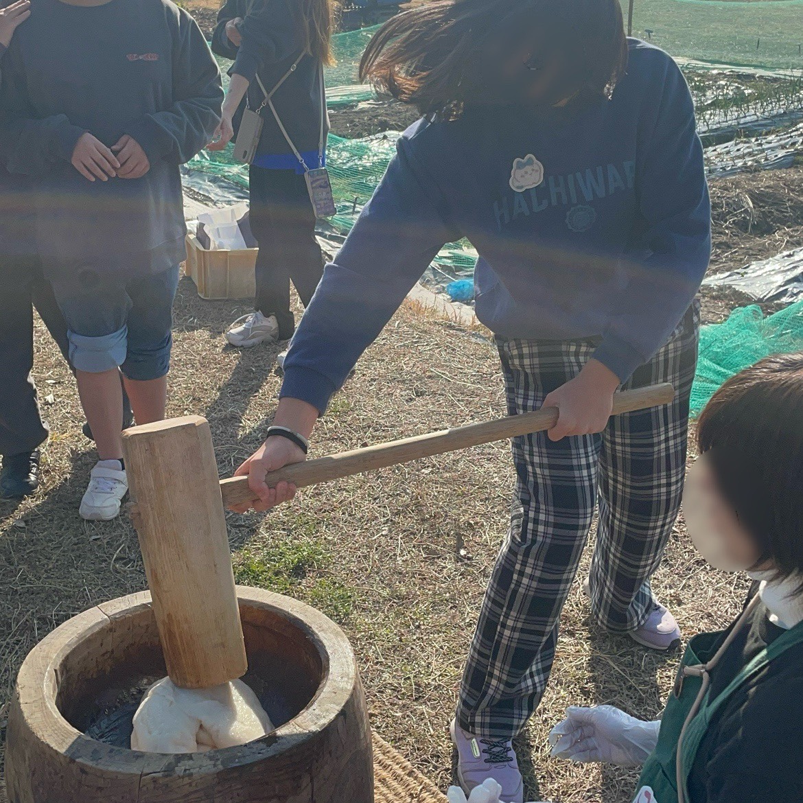 コツを教えていただくと、みんなとっても上手に餅をついていました😄👍
