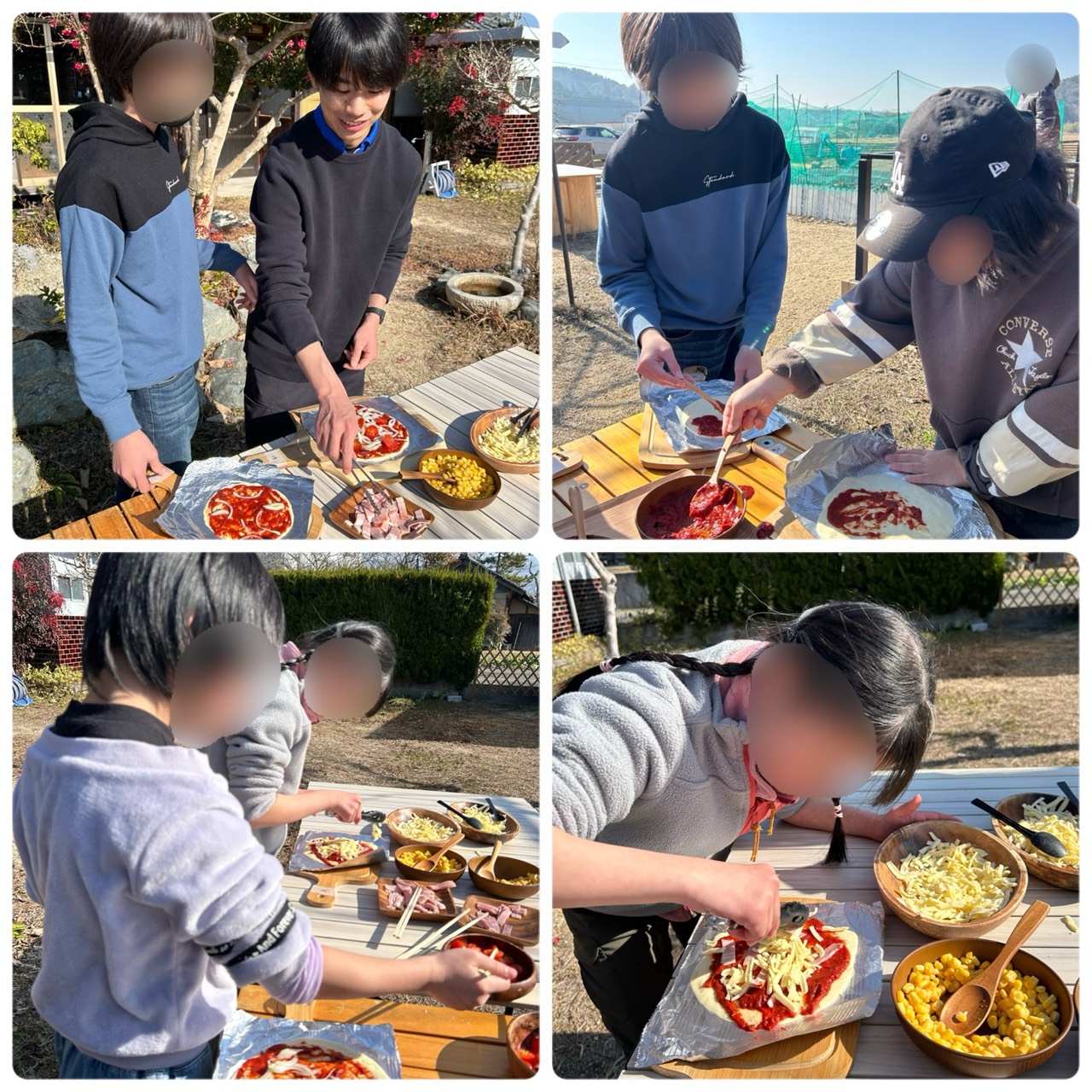みんなでピザ作り体験!ピザ窯で焼いてくださりとっても本格的🍕